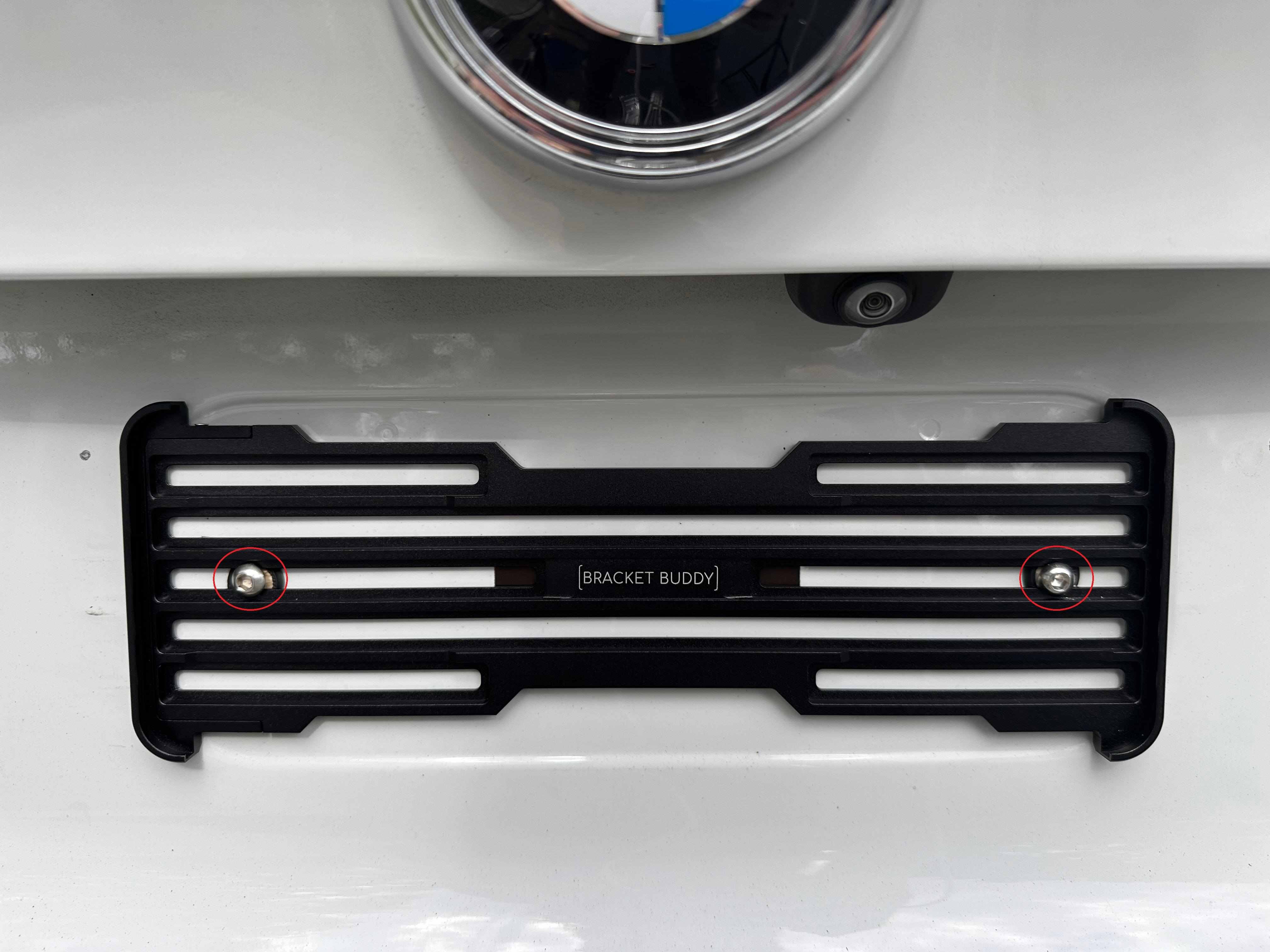 Attach your Bracket Buddy™ Flexi Plate Bracket using the included M6 screws and bolts (we even highlighted them in red so you don’t mix them up). If they don’t fit your car, no stress—you can use your existing hardware instead.